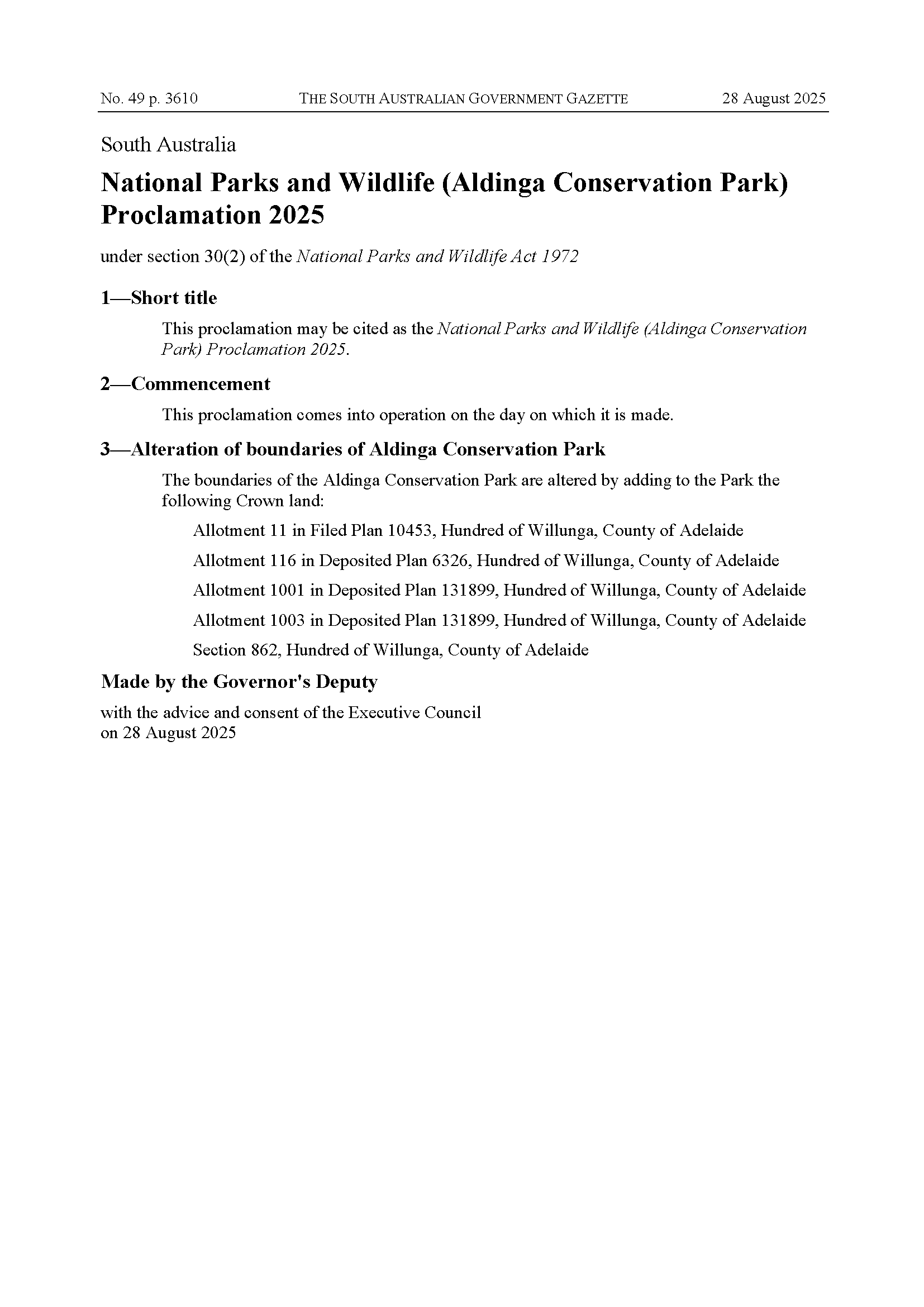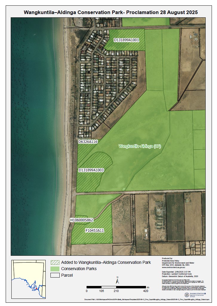 Exciting to see most of the remaining land parcels finally being added into the Aldinga Conservation Park. The Park also has a new name – Wangkuntila–Aldinga Conservation Park. The parcels adjacent to the Silver Sands housing area have stormwater complications – it remains to be seen whether these will be resolved and these parcels also added.